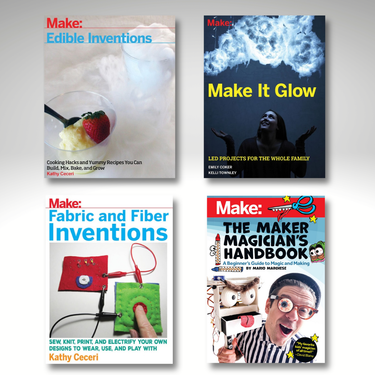 Make: Make: Edible Inventions - Learn to make (and hack!) all of the delicious foods you already love to eat while discovering new methods for cooking them. Explore chemical cuisine, recipe hacks, growing your own food, cooking off the grid, and working with — and building — your own crazy gadgets.