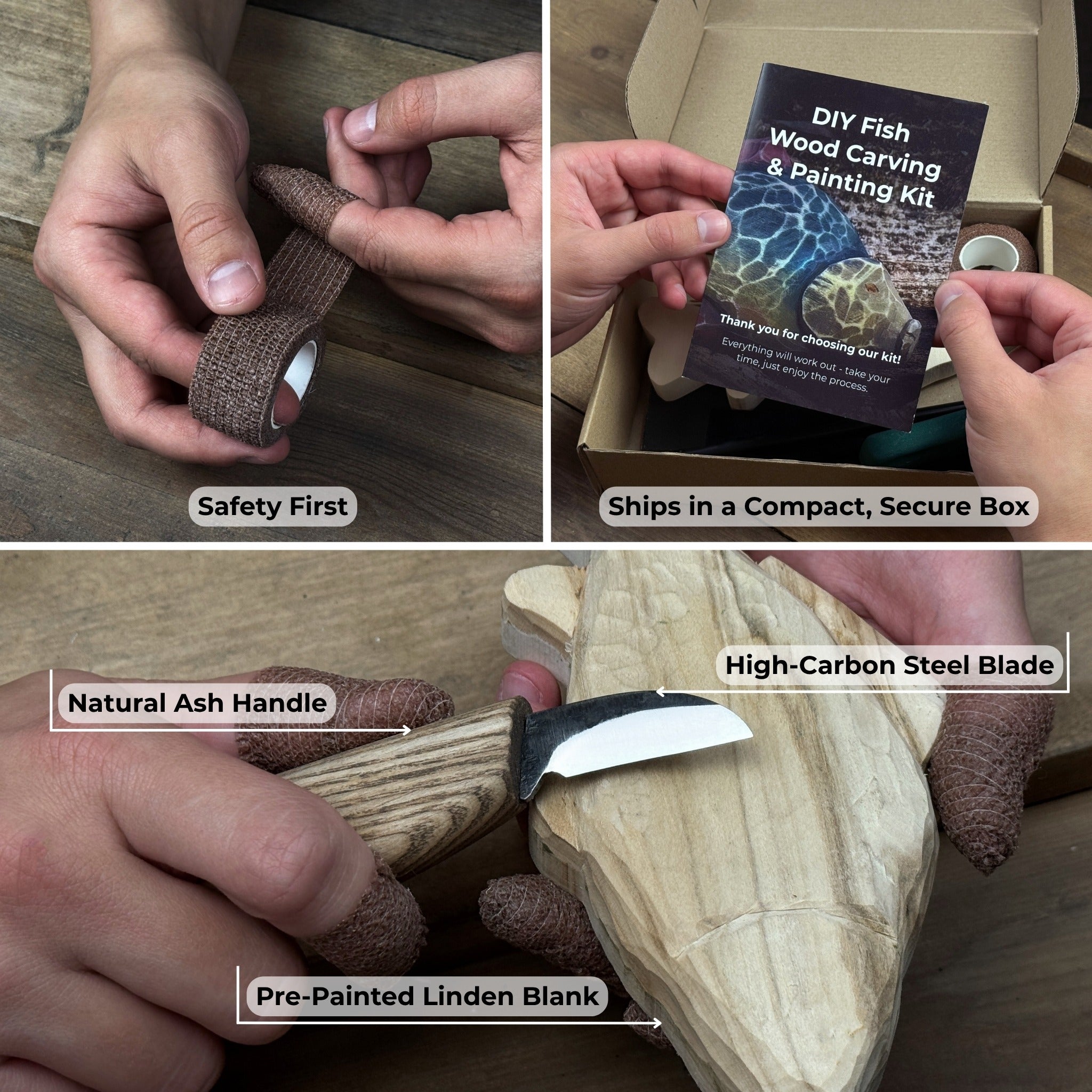 DIY Fish Wood Carving & Painting Kit – Beginner Whittling Set with Video Tutorial