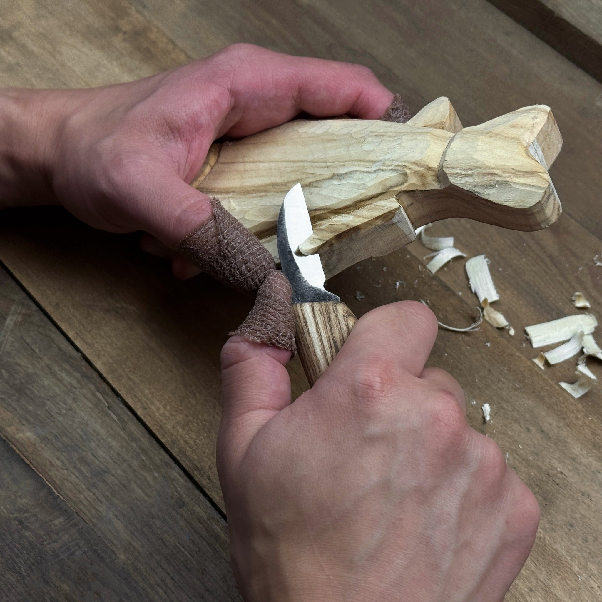 ✔️ Additional Tools: Sharpening board and polishing paste for maintaining blade sharpness, sandpaper sheets for a smooth finish, pencil for marking details, and protective finger plaster for safe carving.