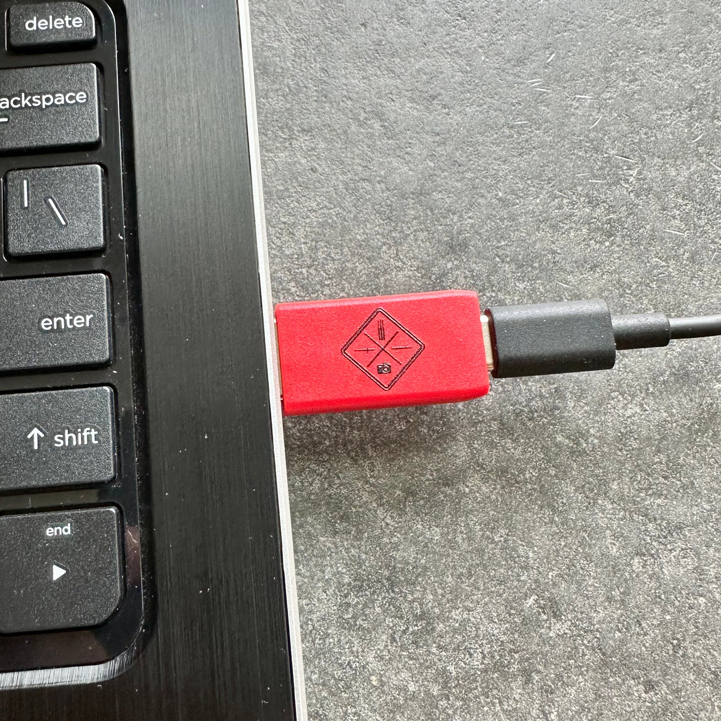 The Travel Secure USB Data Blocker is barely larger than a normal USB-A connector, with a profile of just 18mm x 11mm, so it won’t block neighboring USB sockets.