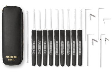 The 14-piece lock pick set – PXS-14 was the first set manufactured by SouthOrd and remains one of the most popular. It’s perfect for beginners and professionals who want a go-to lock pick set kit for everyday lock picking. The textured grips included with the set provide comfortable grip during extended lock picking sessions, while maintaining excellent feedback and stability. With the SouthOrd PXS-14, you’ll enjoy these qualities and more.