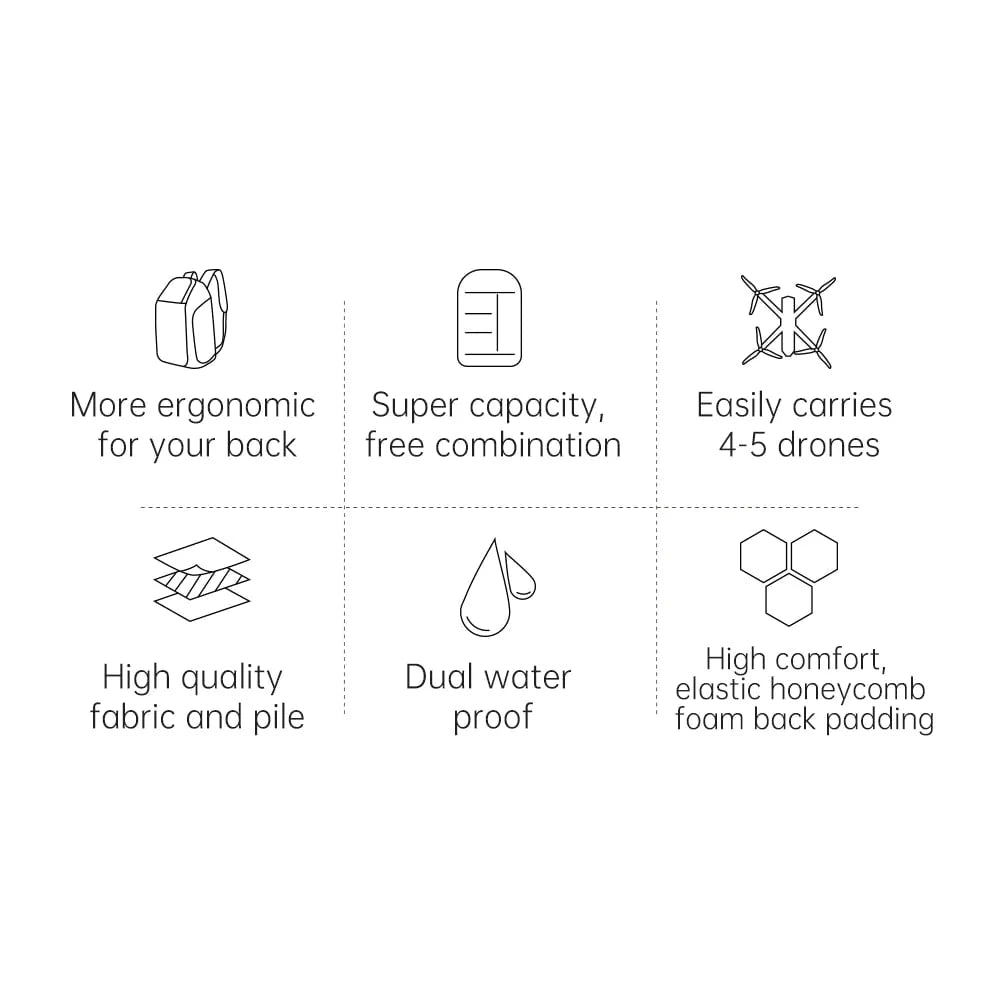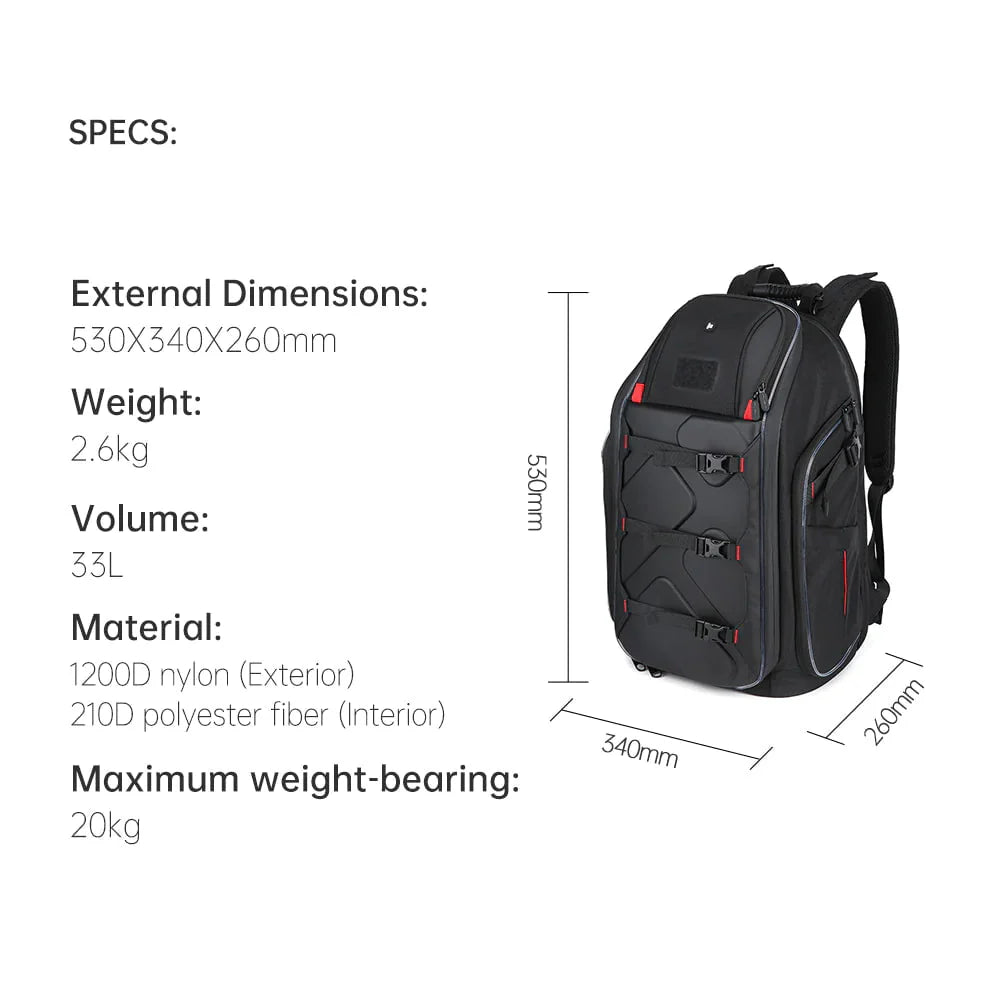 The iFlight Backpack for FPV drones, ideal for transporting your gear wherever you go. Be ready to adapt to every adventure you might be facing with interchangeable dividers for resizable compartments to fit all your equipment. Huge 33 liters volume to even put your drones inside the bag if it's necessary. Protective pouches at the outside to store big and smaller parts like propellers or tools, to fit in your jacket and a second pair of underwear (just in case you're about to do a 250m skyscraper dive).