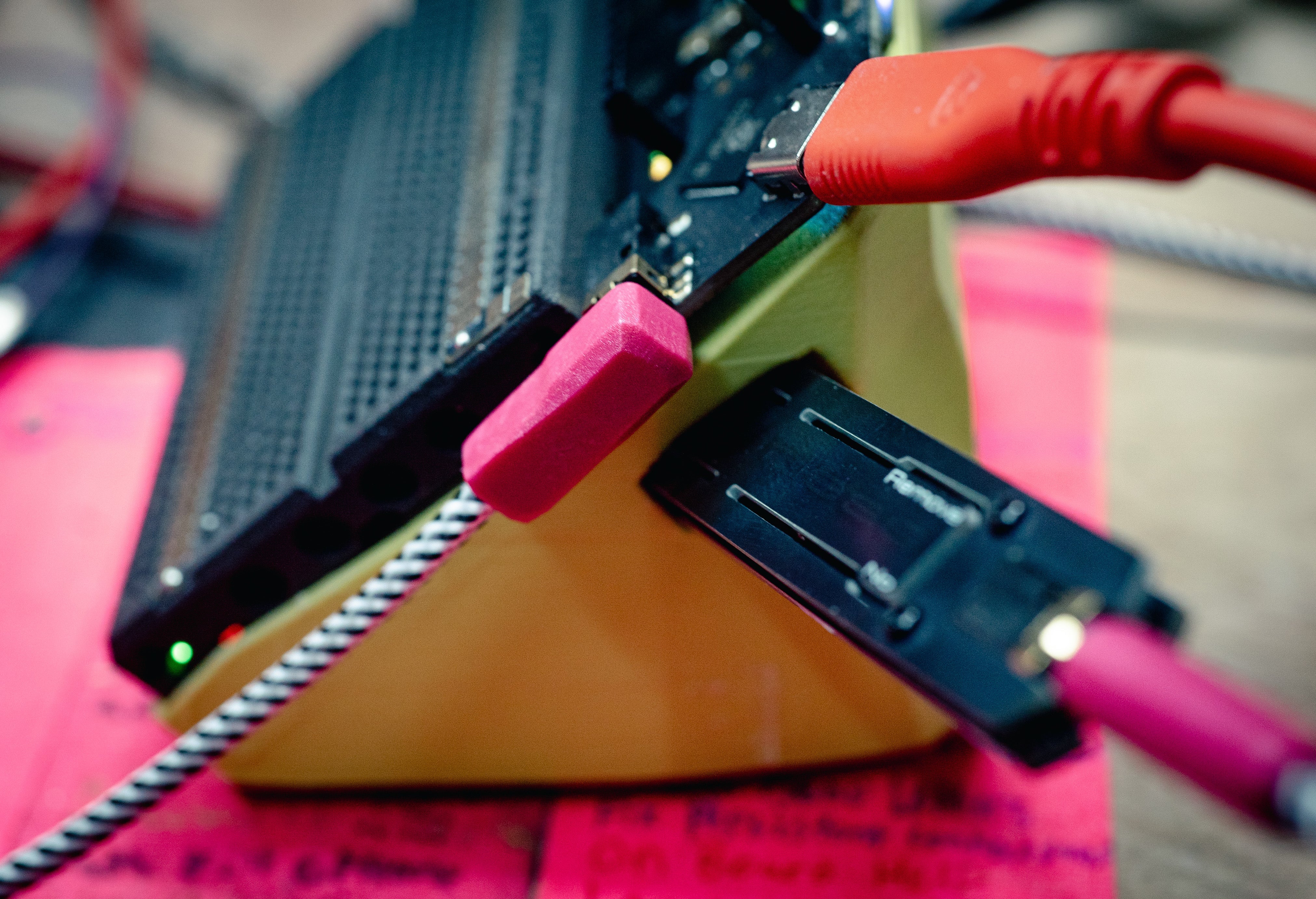 You can connect any point to any other using software-defined jumpers, so the four individually programmable ±8 V power supplies; ten GPIOs; and seven management channels for voltage, current, and resistance can all be connected anywhere on the breadboard or the Arduino Nano header. RGB LEDs under each hole turn the breadboard itself into a display that provides real-time information about whatever’s happening in your circuit.It's not just about being too lazy to plug in some jumpers. With software controlled wiring, the circuititselfis nowscriptable, which opens up a world of infinite crazy new things you could never do on a regular breadboard. Have a script try out every combination of parts until it does what you want (à laevolvable hardware), automatically switch around audio effects on the fly, characterize some unknown chip with the part numbers sanded off, or don't bother with any of that and justplay Doom on it.