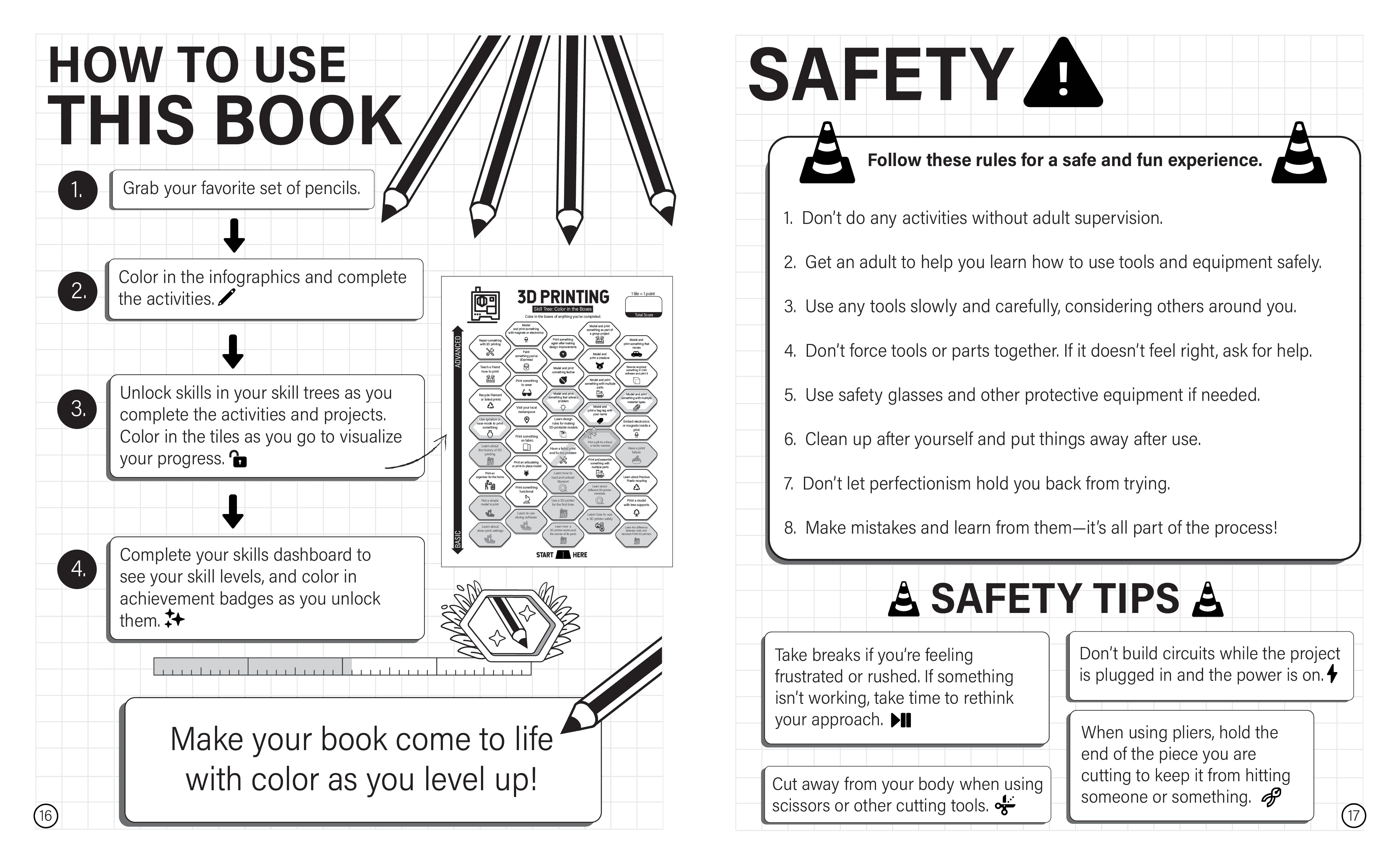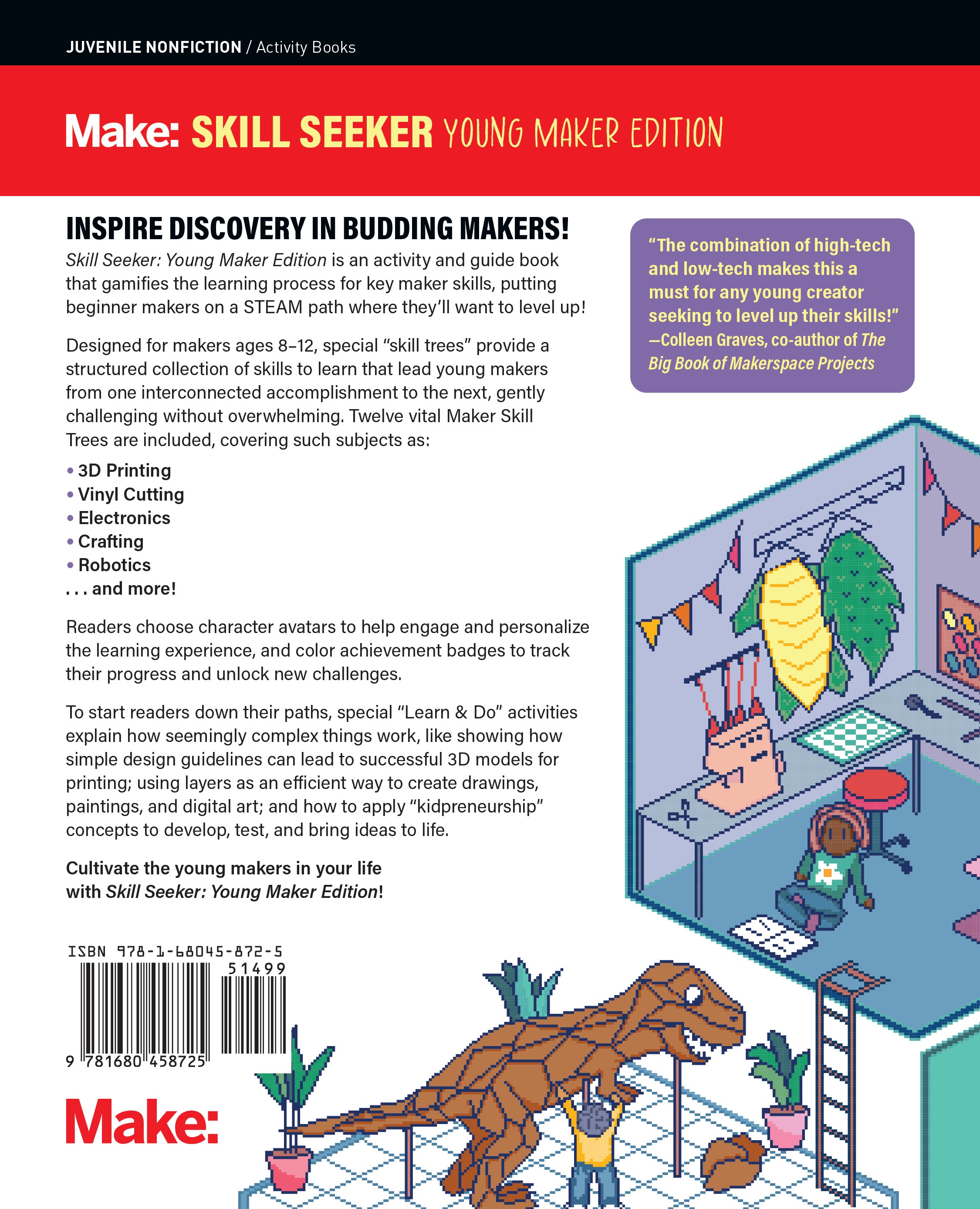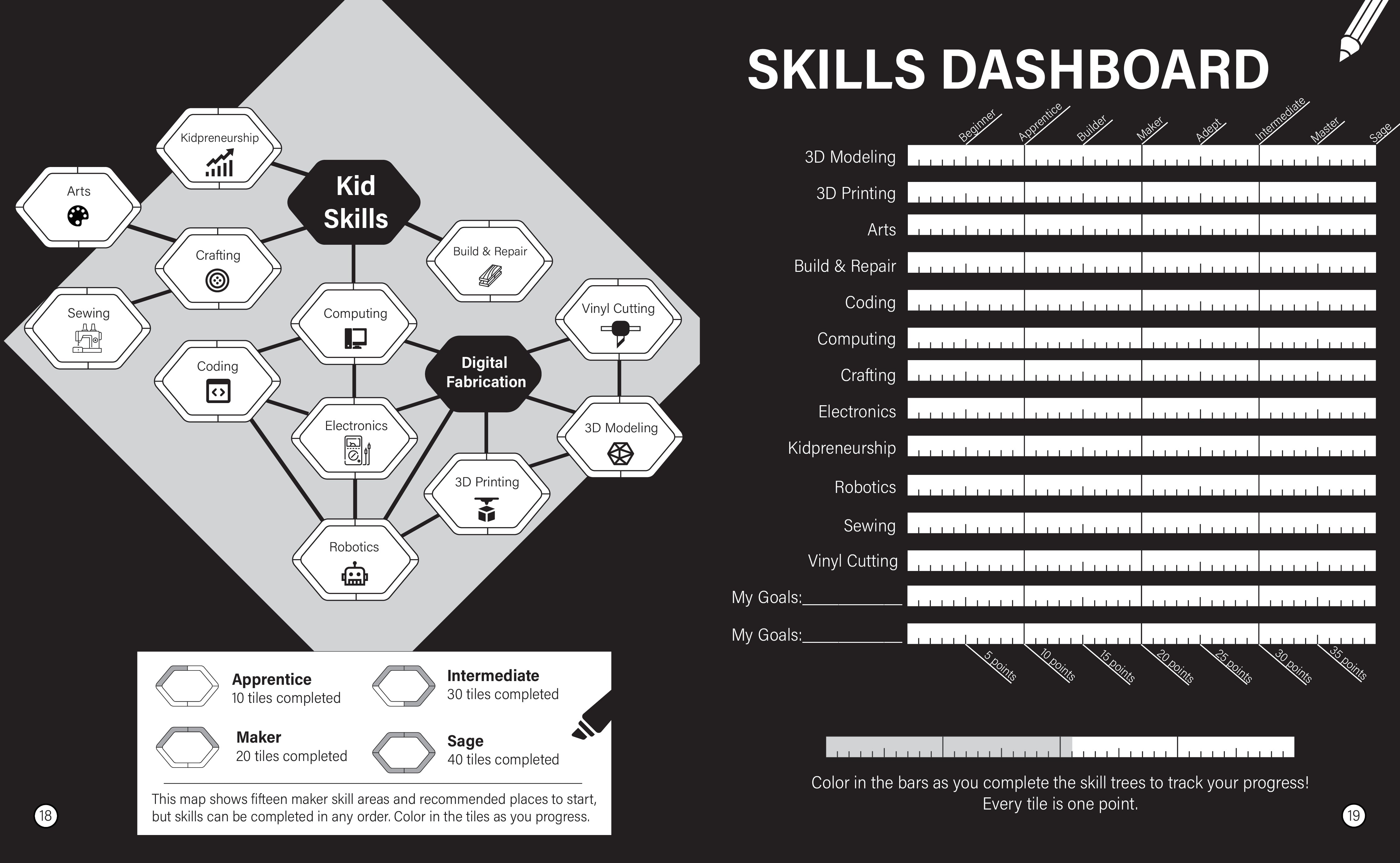 Skill Seeker: Young Maker Edition is an activity and guide book that gamifies the learning process for key maker skills, putting beginner makers on a STEAM path where they’ll want to level up!