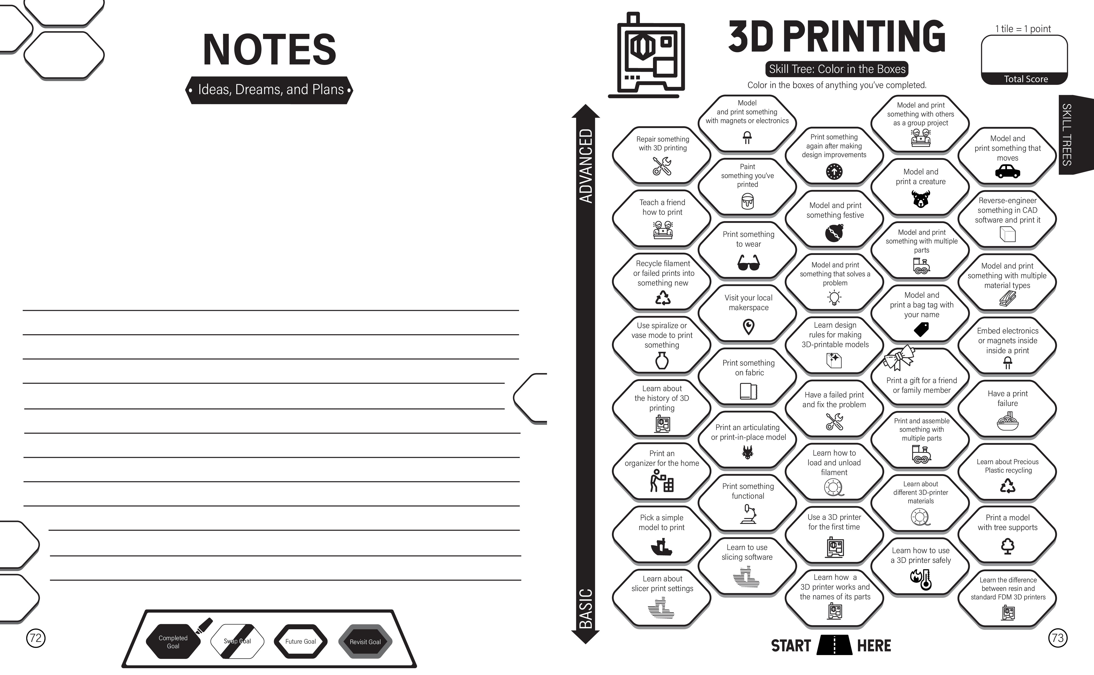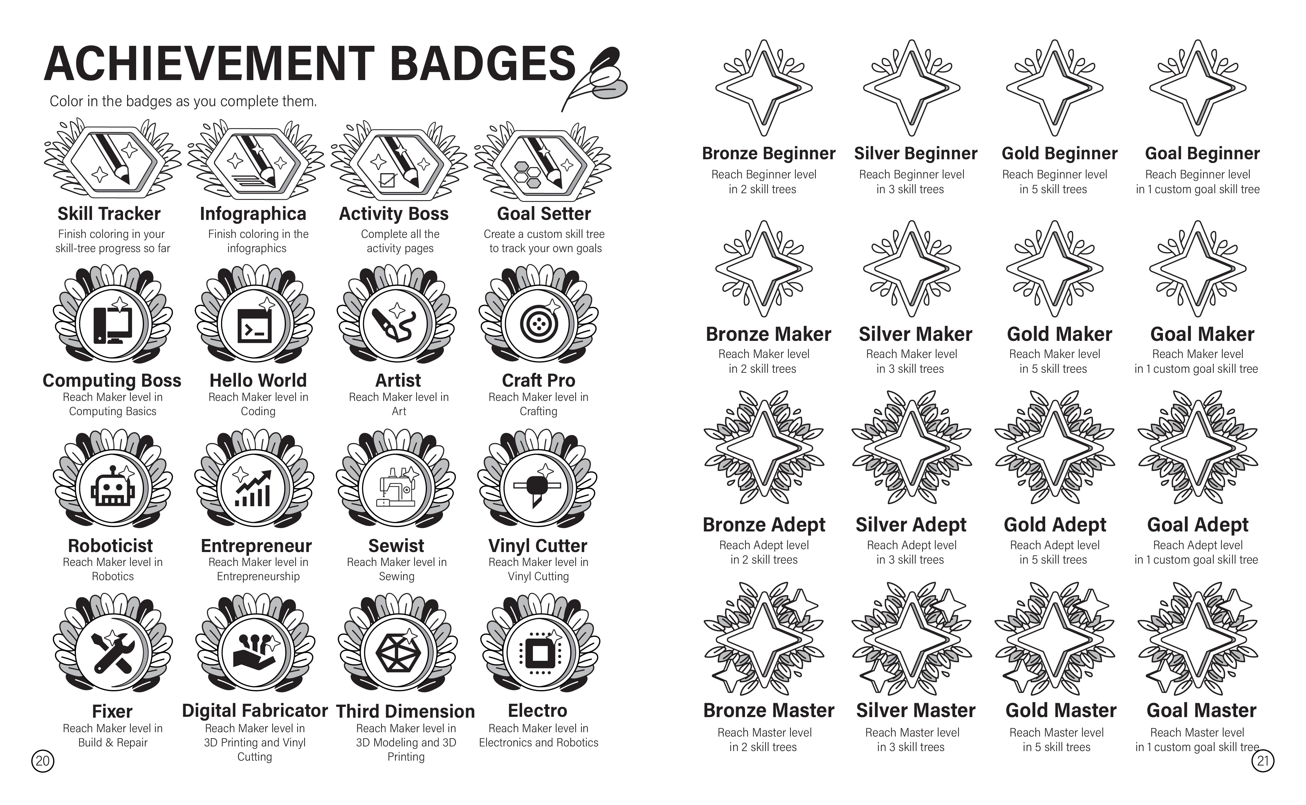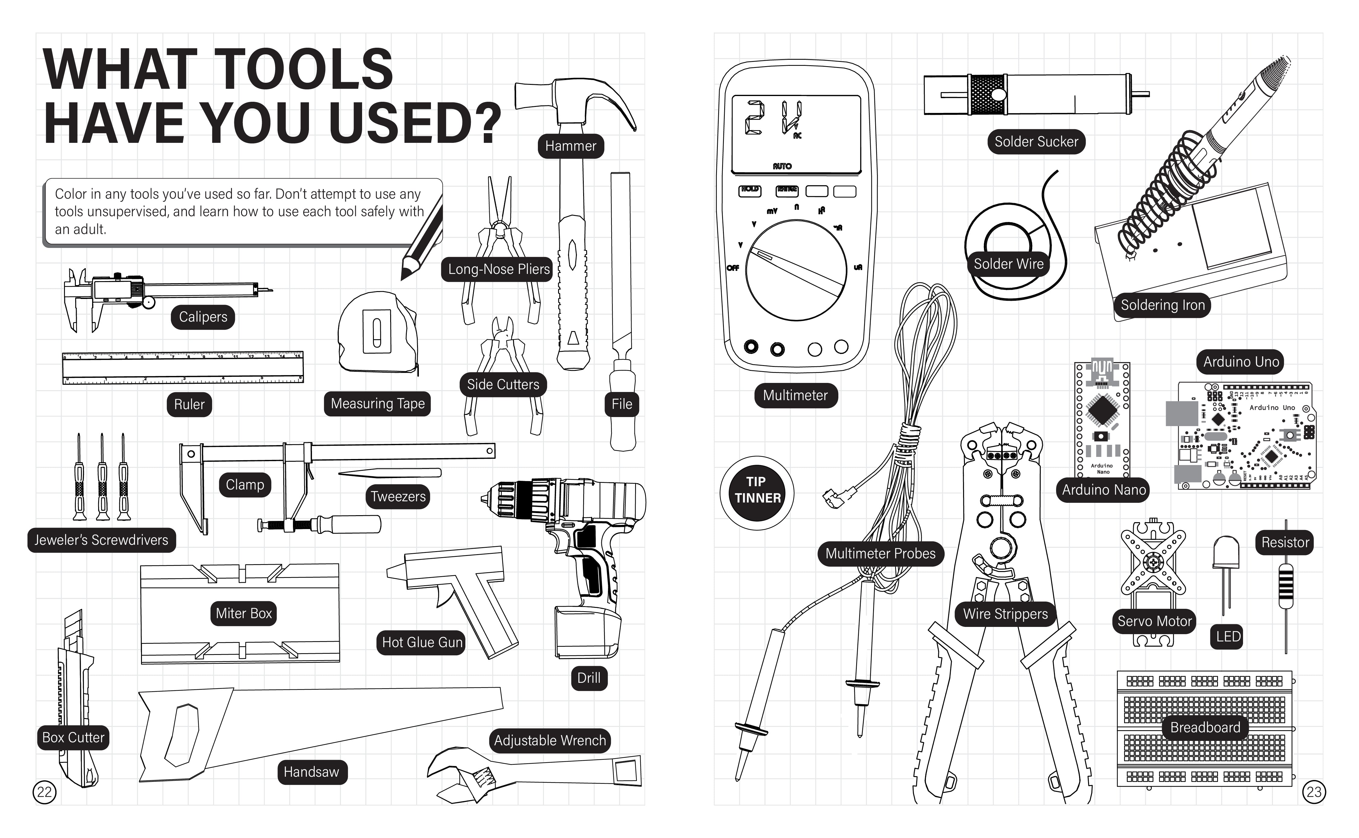 Skill Seeker: Young Maker Edition is an activity and guide book that gamifies the learning process for key maker skills, putting beginner makers on a STEAM path where they’ll want to level up!