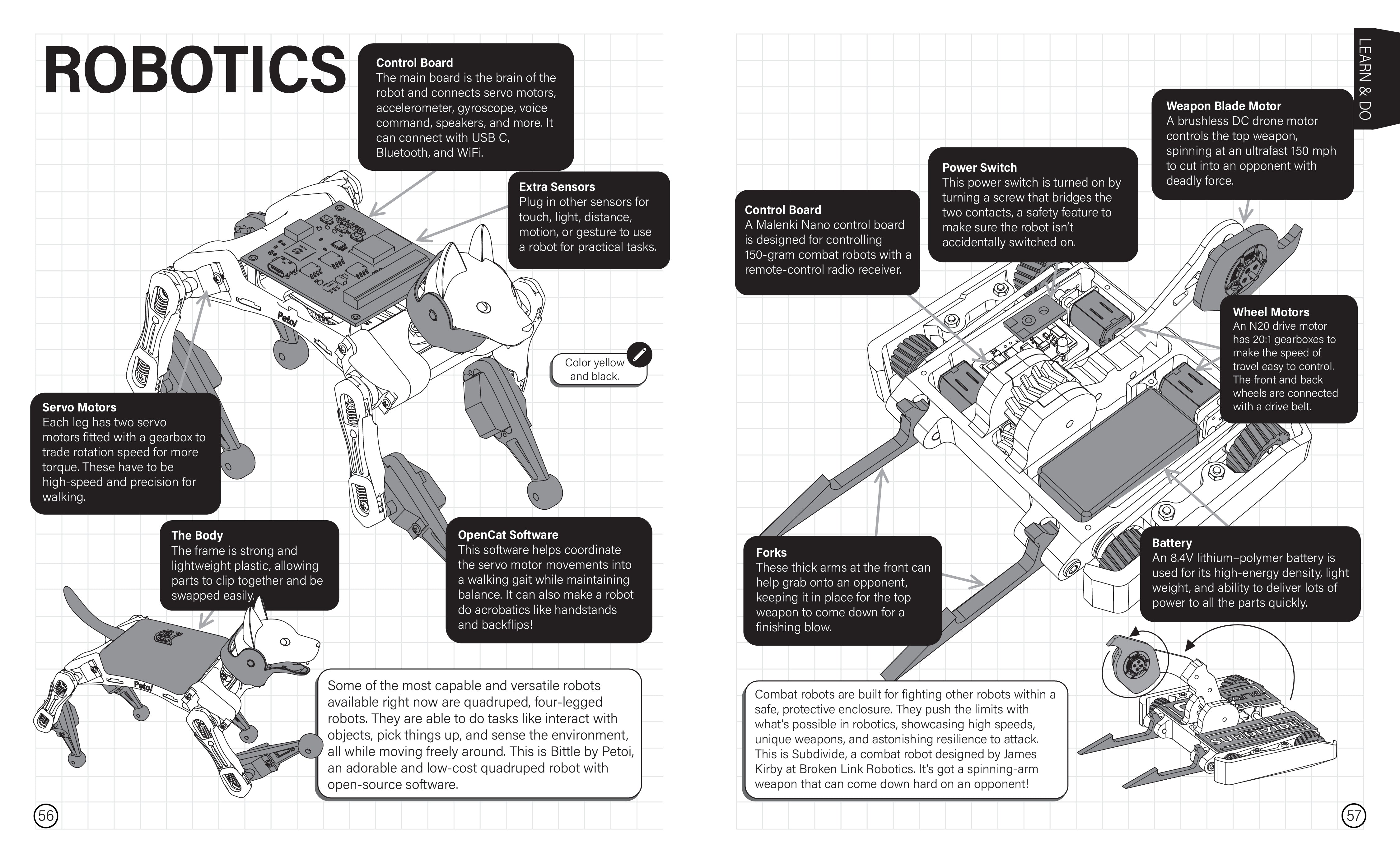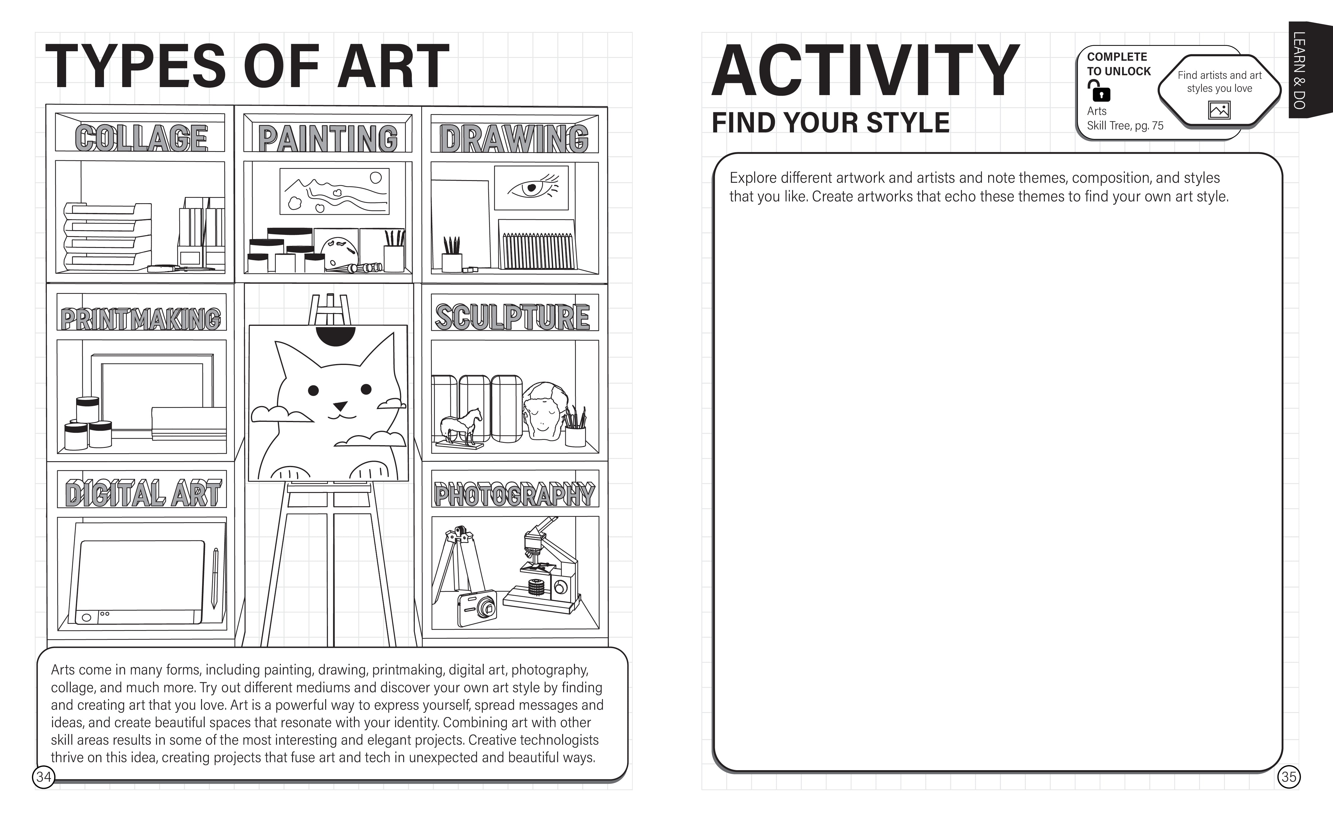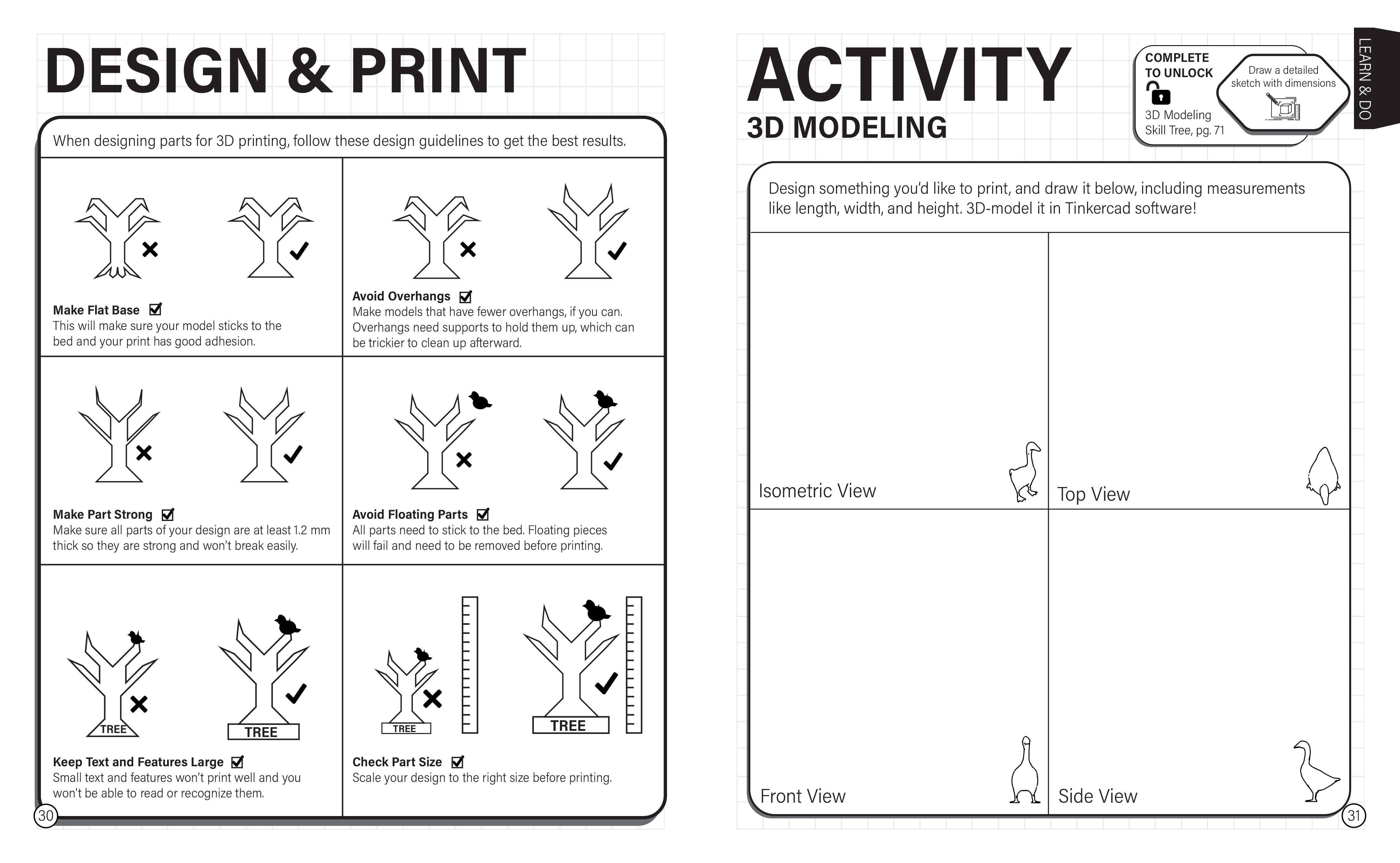To start readers down their paths, special “Learn & Do” activities explain how seemingly complex things work; like simple design guidelines to successfully design 3D models for printing; using layers to efficiently create drawings, paintings, and digital art; and even “Kidpreneurship” concepts to develop, text, and bring ideas to life.