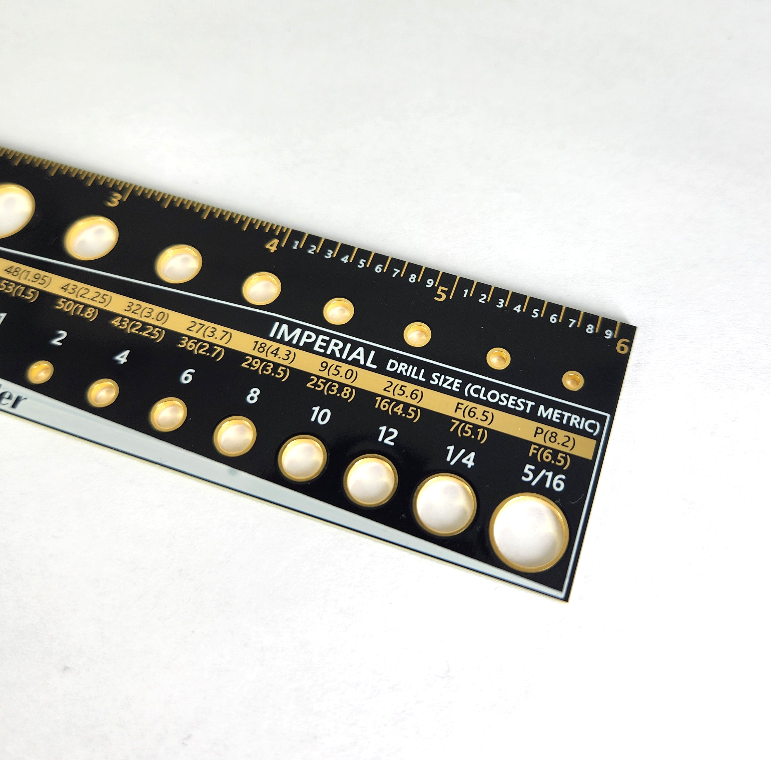 - Holes for machine screw sizes 0, 1, 2, 4, 6, 8, 10, 12, 1/4", and 5/16"