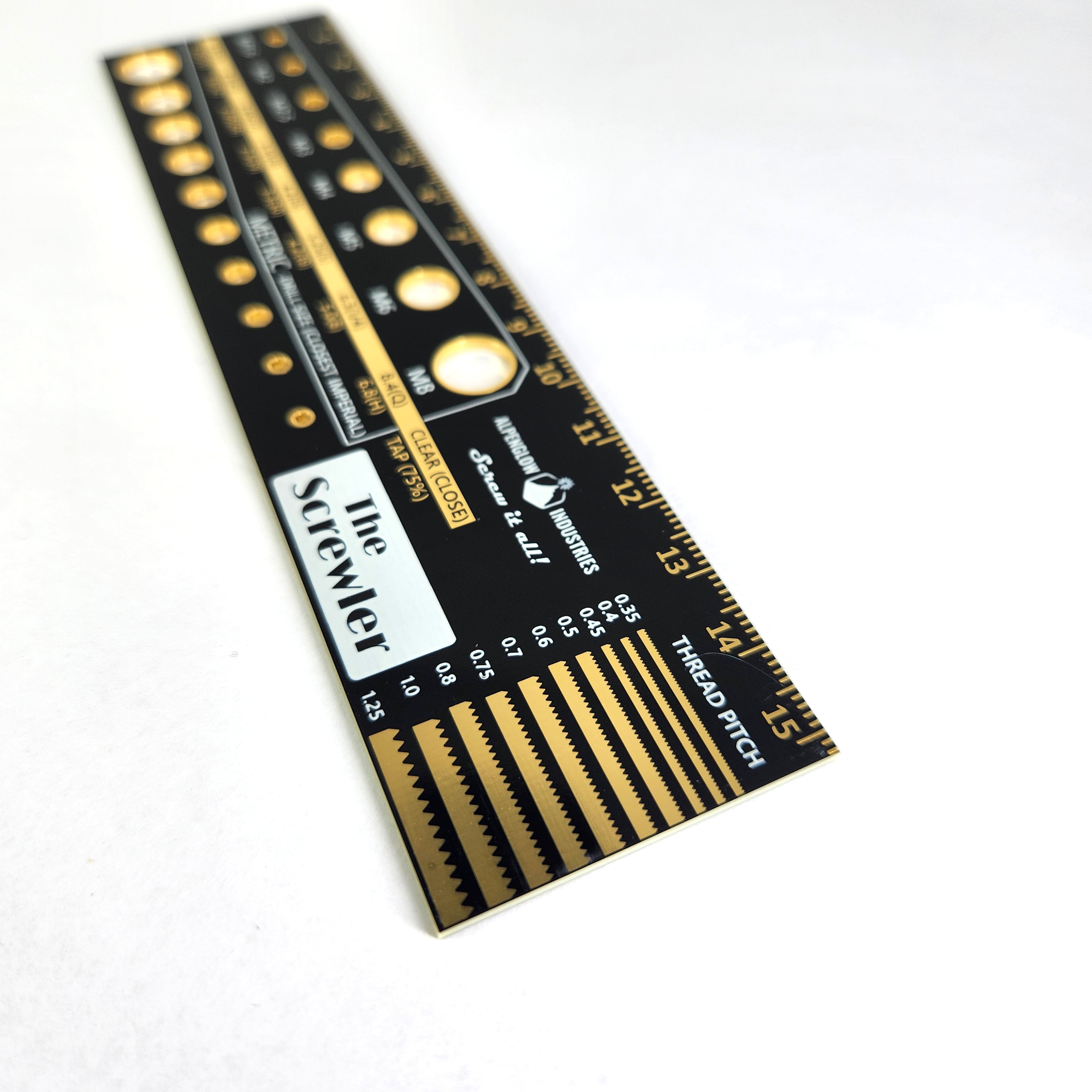- Tooth profile in SHINY GOLD for 18, 20, 24, 32, 40, 48, 56, 64, 72, and 80 TPI (threads per inch)