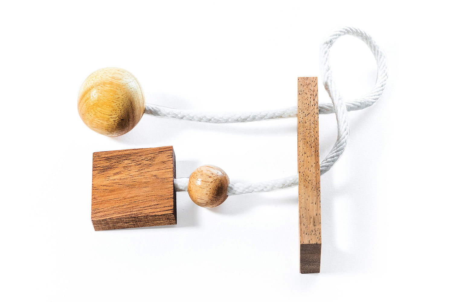 Thirsty for a Challenge? Try our Beer puzzle trap! The "Think Before Your Drink” Beer Bottle Puzzle is the perfect way to blur the lines between puzzling and partying! Tease your guests by withholding beer (or your favorite liquor) until someone can free the bottle! This classic disentanglement puzzle uses an ancient brain teaser to keep the bottle under wraps, trapped by a system of ropes and shapes. The goal, obviously, is to free the bottle, and it surprisingly only takes 4 moves! How difficult could 4 moves be? Well, that depends on how badly you want your beer. When you or your guests discover the correct sequence of twists and turns, the top piece will lift up and free the bottle.